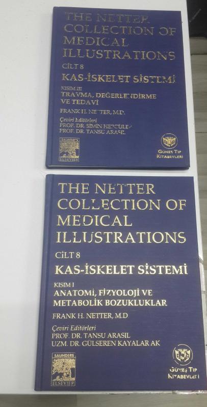 The NETTER Collection of MEDICAL Illustrations ©2009.. cilt 8 : KAS – İSKELET SİSTEMİ.. Kısım 1:Anatomi,Fizyoloji,Metabolik Bozukluklar ..Kısım 3: Travma,Değerlendirme,Tedavi .. ciltli, Ed: Frank H. NETTER (1906-1991) tarafından kaleme alınmıştır. Kitap 2009 yılında Saunders Elsevier - Güneş Tıp Kitabevi tarafından [ANKARA] 978-9752772069 ISBN kodu ile yayınlanmıştır. Satışta olan kitap, yayınevinin 1. baskısıdır. Bu baskının çevirisi Ed. Prof. Tansu ARASIL- Prof. Simin HEPGÜLER tarafından yapılmıştır. 480 sayfadır. Sayfa bilgisi kuşe kağıt olarak belirtilmiştir. The NETTER Collection of MEDICAL Illustrations ©2009.. cilt 8 : KAS – İSKELET SİSTEMİ.. Kısım 1:Anatomi,Fizyoloji,Metabolik Bozukluklar ..Kısım 3: Travma,Değerlendirme,Tedavi .. ciltli adlı eser Türkçe dilindedir.