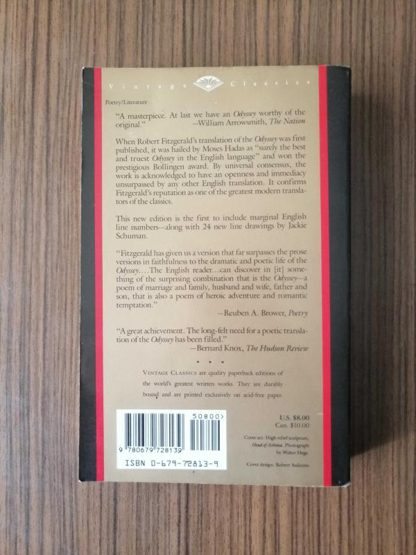 The Odyssey, Homer tarafından kaleme alınmıştır. Kitap 1990 yılında Vintage Books tarafından 9780679728139 ISBN kodu ile yayınlanmıştır. 509 sayfadır. The Odyssey adlı eser İngilizce dilindedir.