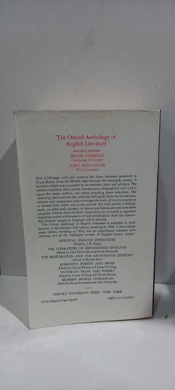 The Oxford Anthology of English Literature Volume 2, FRANK KERMODE, JOHN HOLLANDER tarafından kaleme alınmıştır. Kitap 1980 yılında OXFORD tarafından [LONDON] yayınlanmıştır. The Oxford Anthology of English Literature Volume 2 adlı eser İngilizce dilindedir.