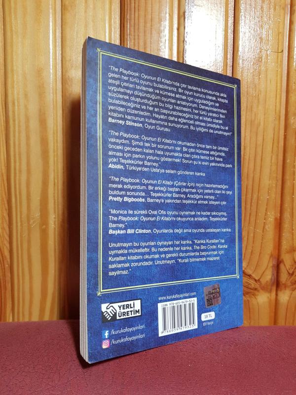 The Playbook - Oyunun El Kitabı, Barney Stinson, Matt Kuhn tarafından kaleme alınmıştır. Kitap 2021 yılında Kurukafa Yayınları tarafından [ANKARA] yayınlanmıştır. Bu baskının çevirisi Selen Yağcı tarafından yapılmıştır. 141 sayfadır. The Playbook - Oyunun El Kitabı adlı eser Türkçe dilindedir.