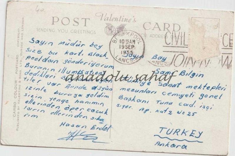 Arka yüzü Türkçe yazılı. Pulu alınmış.