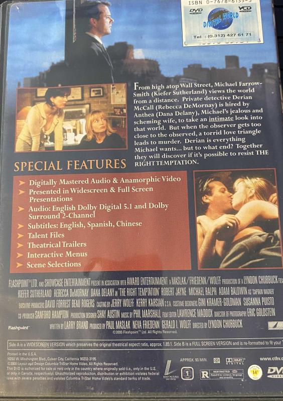 The Right Temptation, Kiefer Sutherland, Rebecca de Mornay, bir ay önce satışa sunulmuştur.