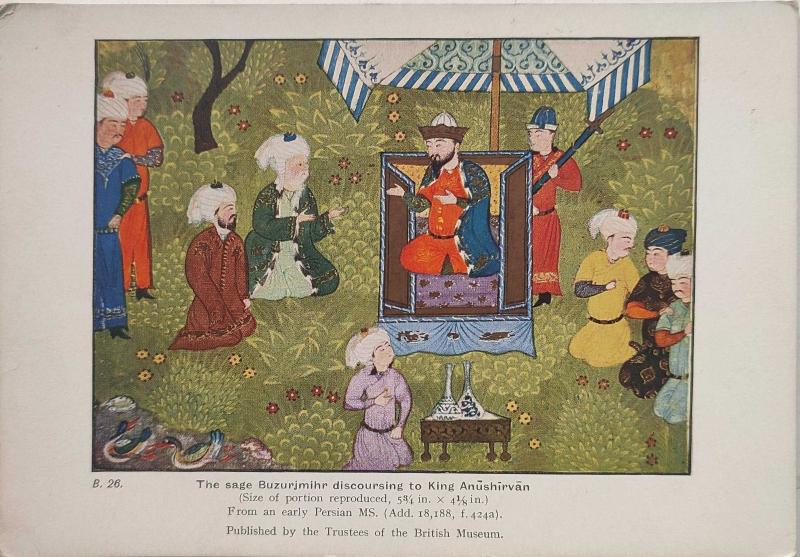 The sage Buzurjmihr discoursing to King Anushirvan (Size of portion reproduced, 584 in. x 4 in.) From an early Persian MS. (Add. 18, 188, f. 424a). Published by the Trustees of the British Museum. YABANCI KARTPOSTAL KART POSTAL (VALİZ KUTU, en son 1 yıl önce güncellenmiştir.