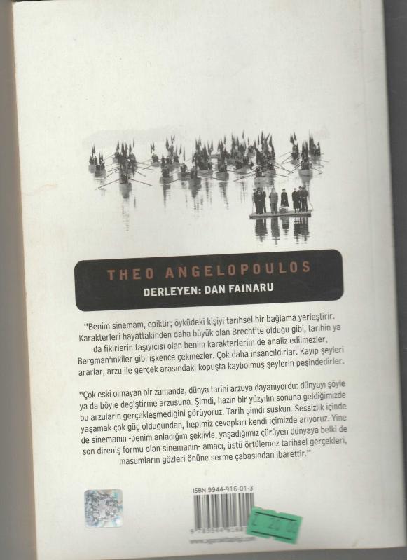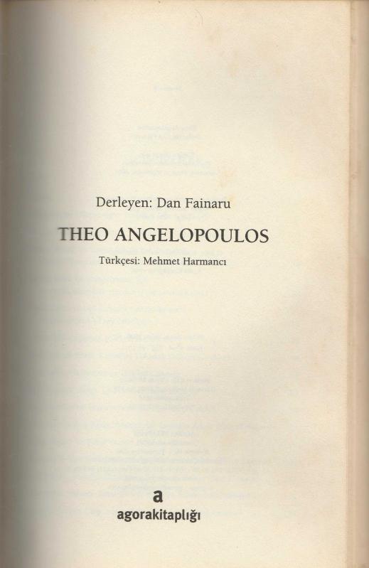 Theo Angelopoulos, DAN FAINARU tarafından kaleme alınmıştır. Kitap 2006 yılında AGORA tarafından [İSTANBUL] yayınlanmıştır. Bu baskının çevirisi Mehmet Harmancı tarafından yapılmıştır. 200 sayfadır. Theo Angelopoulos adlı eser Türkçe dilindedir.