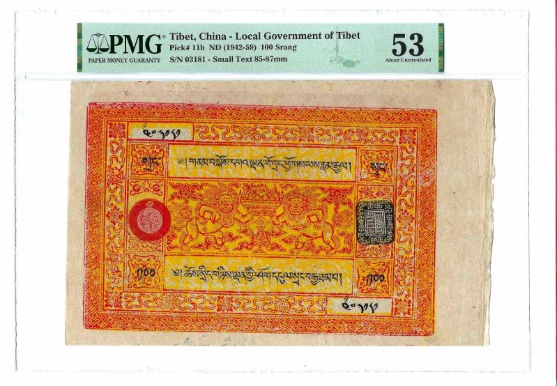 Tibet China-Local Government of Tibet 100 Srang Pick#11b 1942-59 PMG 53 aUNC ÇİLALTI, dün satışa sunulmuştur.