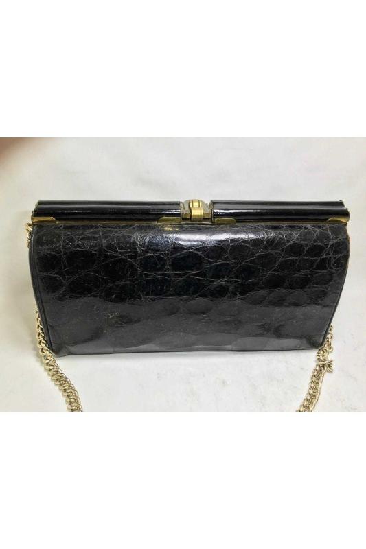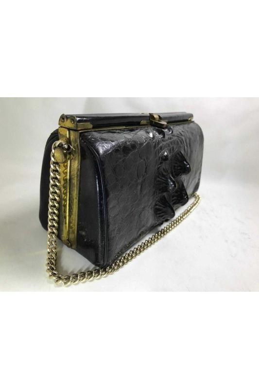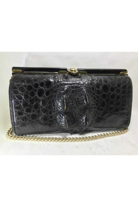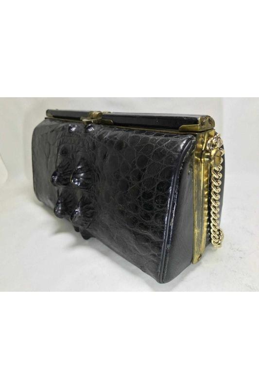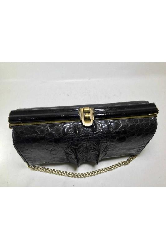 Timsah derisi çanta 23 cm 12 cm 9 cm ölçülerinde başlıklı antika/koleksiyon objesinin menşei belirtilmemiştir. Objenin ait olduğu dönem bilinmeketedir.