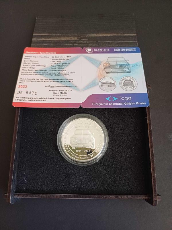 Togg Gümüş Hatıra Para 31.10 gr 1 ons 925 ayar, 2 yıl önce satışa sunulmuştur.