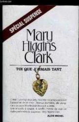 Toi Que J'aimais Tant, Mary Higgins Clark tarafından kaleme alınmıştır. Kitap 2002 yılında Albin Michel tarafından yayınlanmıştır. 391 sayfadır. Toi Que J'aimais Tant adlı eser Fransızca dilindedir.