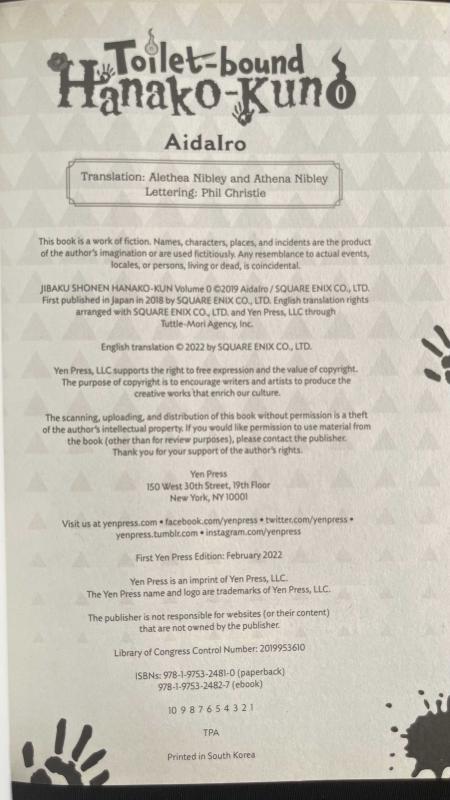 Toilet-Bound Hanako-kun - Vol. 0 - Jibaku Shonen - Manga - English - Softcover - By Aidalro - Yen Press, Yen Press tarafından kaleme alınmıştır. Kitap 2022 yılında Yen Press tarafından [South Korea] 9781975324810 ISBN kodu ile yayınlanmıştır. Satışta olan kitap, yayınevinin 1. baskısıdır. Bu baskının çevirisi Alethea and Athena Nibley tarafından yapılmıştır. 194 sayfadır. Sayfa bilgisi 3. Hamur olarak belirtilmiştir. Toilet-Bound Hanako-kun - Vol. 0 - Jibaku Shonen - Manga - English - Softcover - By Aidalro - Yen Press adlı eser İngilizce dilindedir.