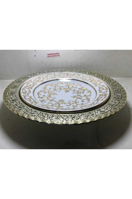 Toplam 31 cm çapında bakır geçirmeli El boyama Kütahya porselen duvar tabağı Renk: altın Beden: Tek Ebat Marka: tayfuntufan antika koleksiyon Kategori İsmi: Dekoratif Tabak & Kase