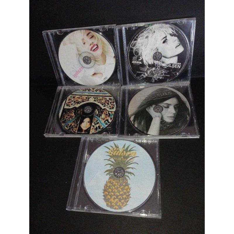 Toplam 5 adet Gülşen cd si. mucize önsöz yeni biri bangır bangır beni durdursan mı. Orijinal. Kartonetleri yok. Dinlemeyi etkilemeyen yoğun çizikler var. Hepsi baştan sona dinlendi sorunsuz çalışıyor. Hepsinin fiyatıdır.