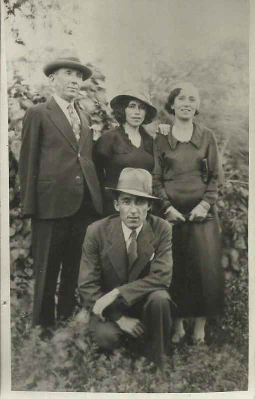 Dönemin modasını yansıtan muhtemel aile fotoğrafı. İki küçük iğne deliği var.