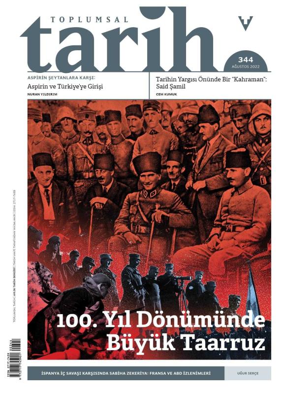 Osmanlı Basınında Yüz Yıl Önce Bu Ay – Hazırlayan: Emel Seyhan Tarih Vakfı’ndan Yeni Bir Dergi Toplumsal Tarih Akademi: Osmanlı-Türkiye Çalışmaları Dergisi – NURŞEN GÜRBOĞA – YAŞAR TOLGA CORA – FİRUZAN MELİKE SÜMERTAŞ – CENGİZ YOLCU 100. Yıl Dönümünde Büyük Taarruz – MESUT UYAR Lojistik: Bilim midir, Sanat mıdır? Büyük Taarruz’da Türk Ordusu’nun Lojistiği – BÜLENT DURGUN Sakarya’dan Büyük Taarruz’a Gergin Bekleyiş – M. FATİH BAŞ Yunan Generalleri ve Küçük Asya Ordusu’nun Hezimetindeki Rolleri – KONSTANTINOS TRAVLOS Büyük Taarruz: Türk’ün İki Asırlık Makûs Talihini Değiştiren Muharebe – MESUT UYAR Büyük Taarruz ve Hint Hilafet Hareketi’nin Para Yardımı – Y. DOĞAN ÇETİNKAYA Aspirin Şeytanlara Karşı: Aspirin ve Türkiye’ye Girişi – NURAN YILDIRIM Tarihin Yargısı Önünde Bir “Kahraman”: Said Şamil – CEM KUMUK Cüzdana Aşk: Fındık Fatma – ÖMER OBUZ İspanya İç Savaşı Karşısında Sabiha Zekeriya: Fransa ve ABD İzlenimleri – UĞUR SERÇE Ermeni Devrimci Federasyonu’nun Kürtlere ve Toprağa Bakışı: Sosyalist Bir Osmanlıcılık Hayali – ORHUN YALÇIN