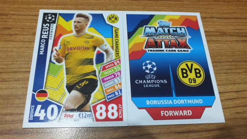 Topps 2017-18 UEFA Champions League Marco Reus Game Changers Kart No:GC5 başlıklı antika/koleksiyon objesi Avrupa menşe’lidir. 2000 ve sonrası dönemine aittir.