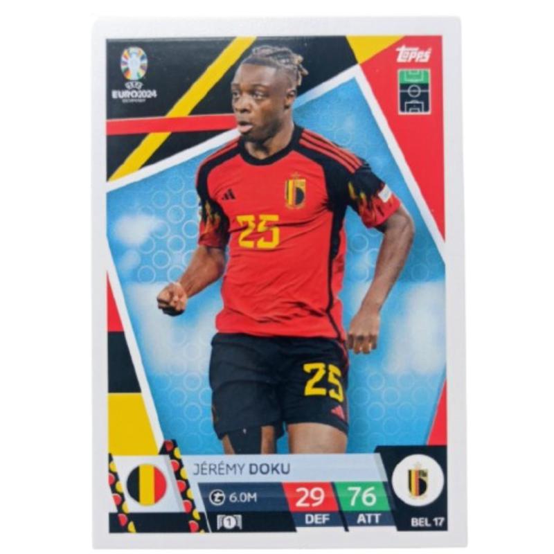 Topps Match Attax Euro 2024 Jeremy Doku Belçika BEL 17 Futbolcu Kartı başlıklı antika/koleksiyon objesi Avrupa menşe’lidir. 2000 ve sonrası dönemine aittir.