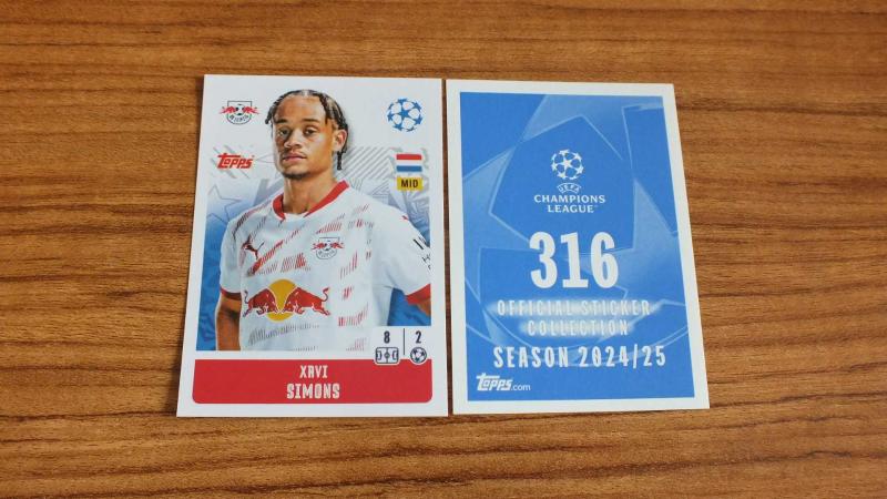Topps UEFA Champions League 2024-2025 RB Leipzig Xavi Simons Sticker No:316 başlıklı antika/koleksiyon objesi Avrupa menşe’lidir. 2000 ve sonrası dönemine aittir.