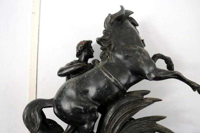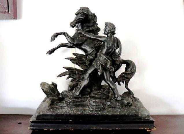 Ürün grubu: Antika bronz ve tutya objeler- Truva savaşı sırasında atıyla su almak üzere dışarı çıkan ve Akilleus'a yakalanan Truva kralı Priamos'un oğlu Paris temalı bronz heykel. Yani Hektor ve Casandra nın kardeşi. 19.Yy.'a ait neoklasik bir parça. Avrupa menşei. Kondisyonu iyi. Y:50cm. Taban 50x23cm. demir heykel, döküm heykel, bronz heykel, antika heykel , bronz imzalı heykel, bronz bayan heykel, tutya, tutya heykel, fransız tutya heykel, truva kralı antika heykel