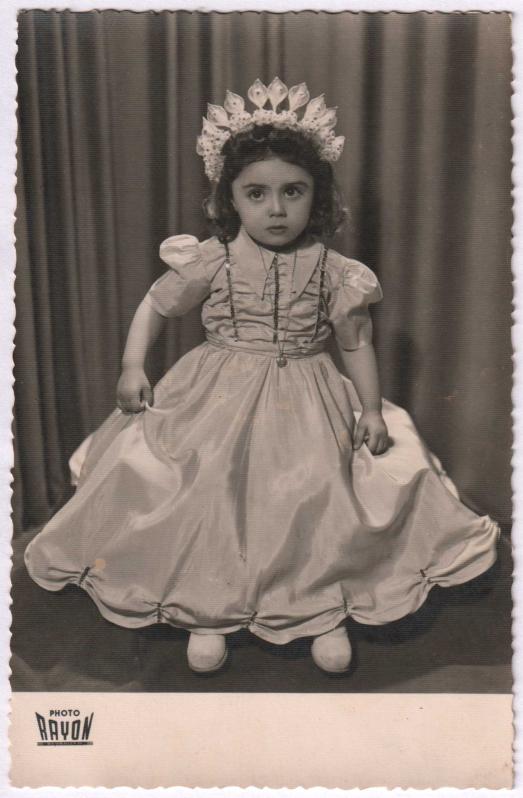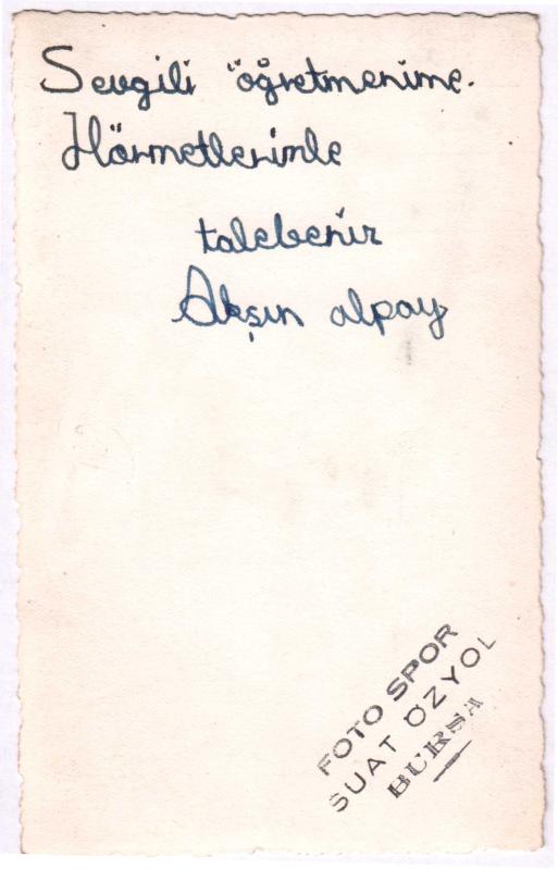 İki adet kız çocuk fotoğrafı. Birisinin arkasında Mart 1951, diğerinin "Sevgili öğretmenime hürmetlerimle!" notu var.