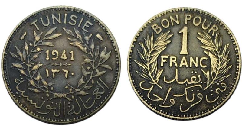 Tunus 1 Frank, 1941 Bon Pour (1921 - 1945)
