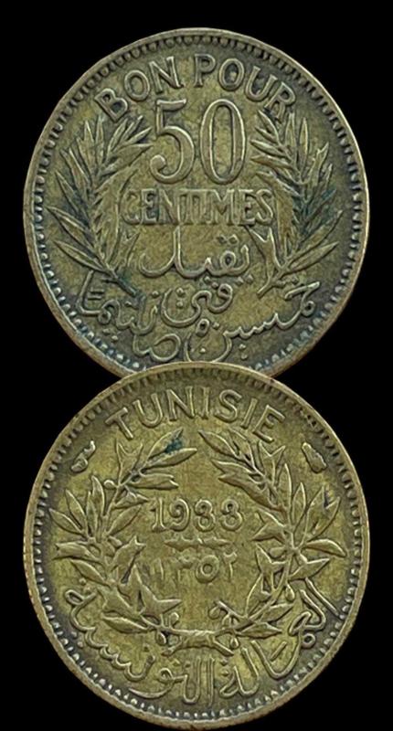 Kondisyon: 10/8.5 Basım Adedi :500.000 Adet Features Issuer Tunisia Ruling authority Muhammad V (1906-1922) Muhammad VI (1922-1929) Ahmad II (1929-1942) Muhammad VIII (1943-1957) Type Standard circulation coin Years 1340-1364 (1921-1945) Calendar Islamic (Hijri) Value 50 Centimes (0.50 TNF) Currency Franc (1891-1957) Composition Aluminium bronze Weight 2 g