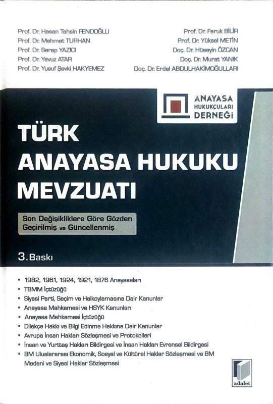 Türk Anayasa Hukuku Mevzuatı 3. Baskı, Hasan Tahsin Fendoğlu tarafından kaleme alınmıştır. Kitap 2014 yılında Adalet Yayınevi tarafından [Ankara] yayınlanmıştır. 674 sayfadır. Türk Anayasa Hukuku Mevzuatı 3. Baskı adlı eser Türkçe dilindedir. Eserin içeriğinde Türkçe dilinde bölümlere de yer verilmektedir.