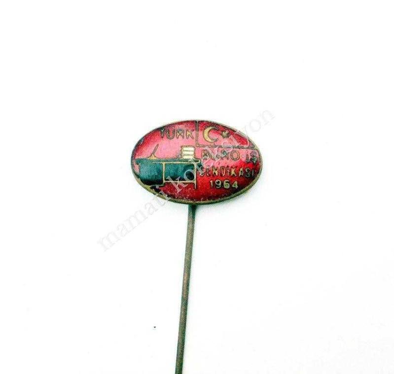 Türk Büro İş Sendikası - Mineli rozet - başlıklı antika/koleksiyon objesinin menşei belirtilmemiştir. Objenin ait olduğu dönem bilinmeketedir.