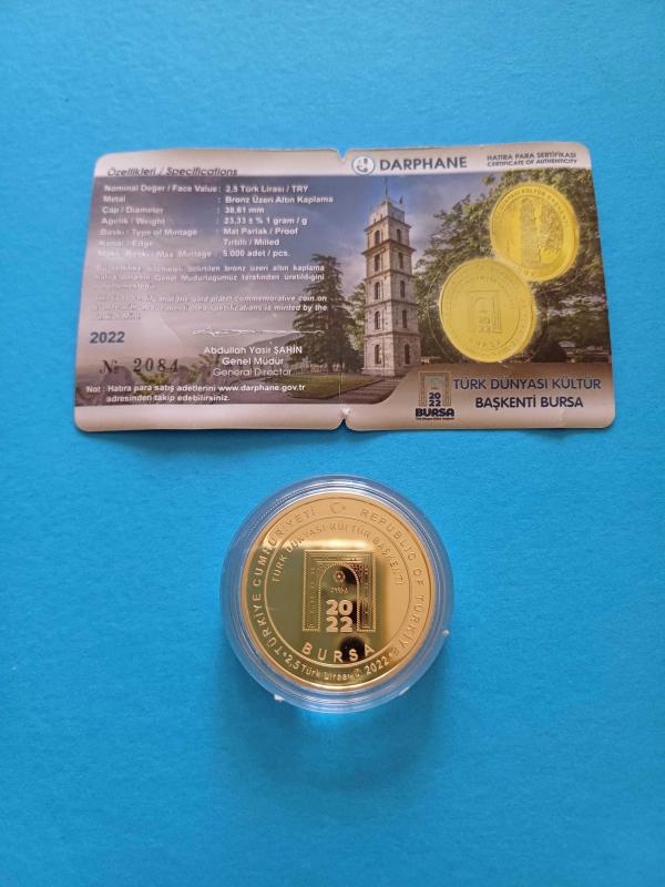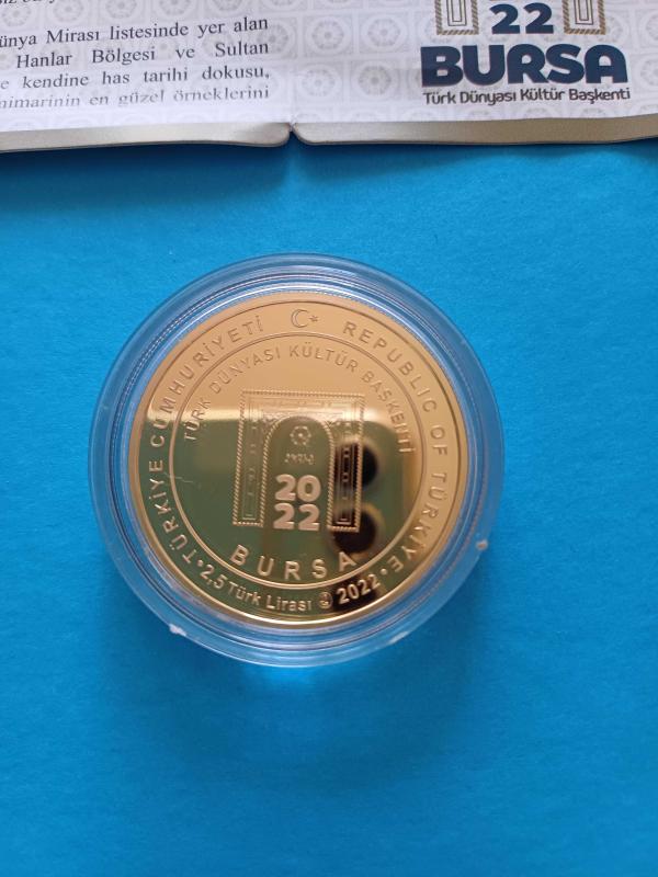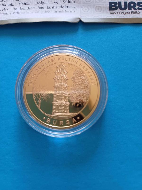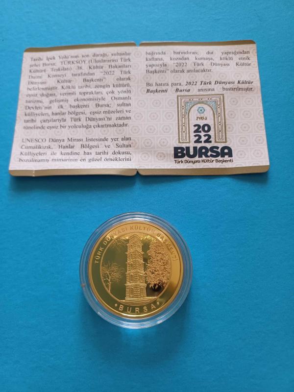 Türk Dünyası Kültür Başkenti Bursa 2022 Hatıra Sadece 5000 adet Basılmıştır Bronz Üzeri Altın Kaplama Sadece 5000 adet Basılmıştır