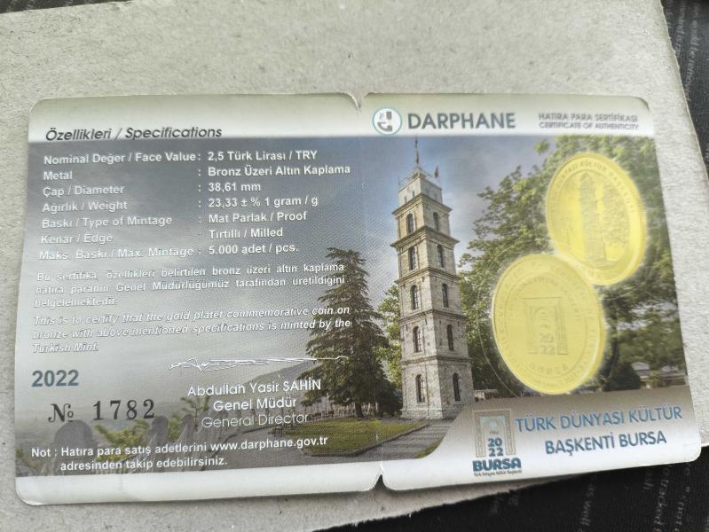 Türk Dünyası Kültür Başkenti-Bursa Altın Kaplama Bronz Hatıra başlıklı ürün, Efemera, Müzik, Sinema > Nümismatik, Para, Madalya > Hatıra Paraları > Hatıra Parası kategorisi altında İkinci El olarak satılmaktadır.