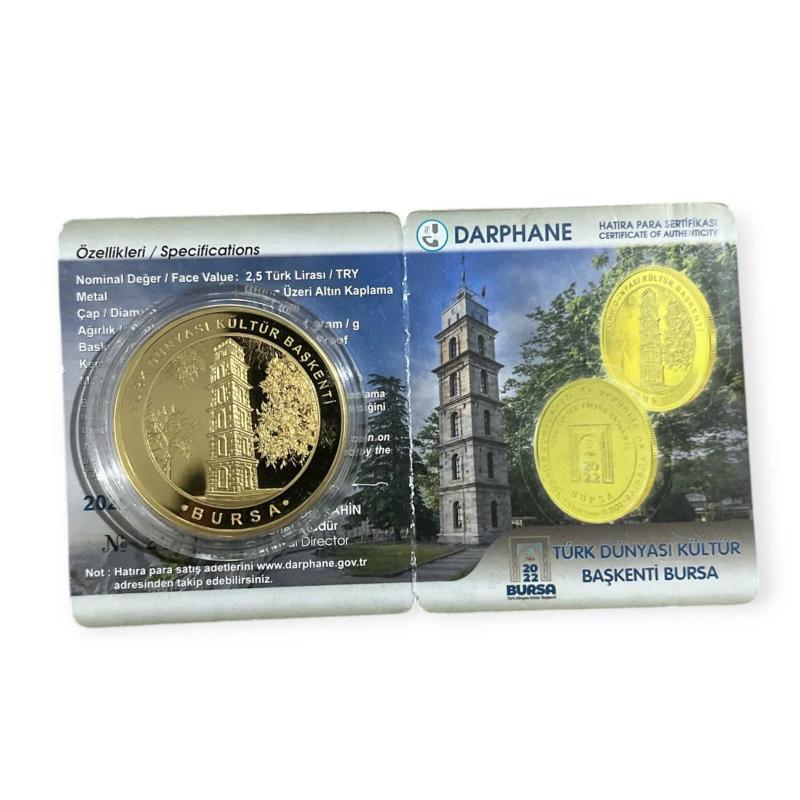 Türk Dünyası Kültür Başkenti Bursa Bronz Üzeri Altın Kaplama Sertifikalı Darphane Hatıra Parası, 2 ay önce satışa sunulmuştur.