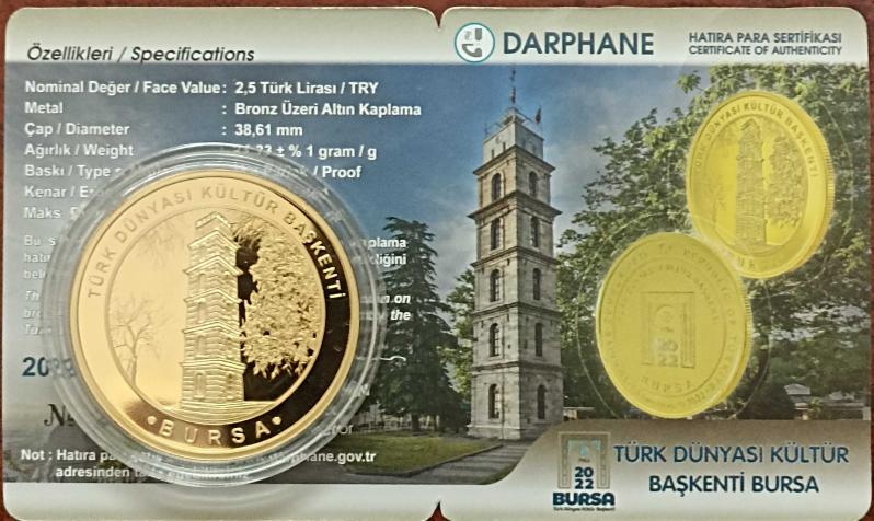 @@Türk Dünyası Kültür Başkenti Bursa @@ @@ Sertifikalı @@ @@ 2022 Yılı @@ @@ Bronz Üzeri Altın Kaplama @@ @@Fotodaki Ürün Gönderilecektir @@
