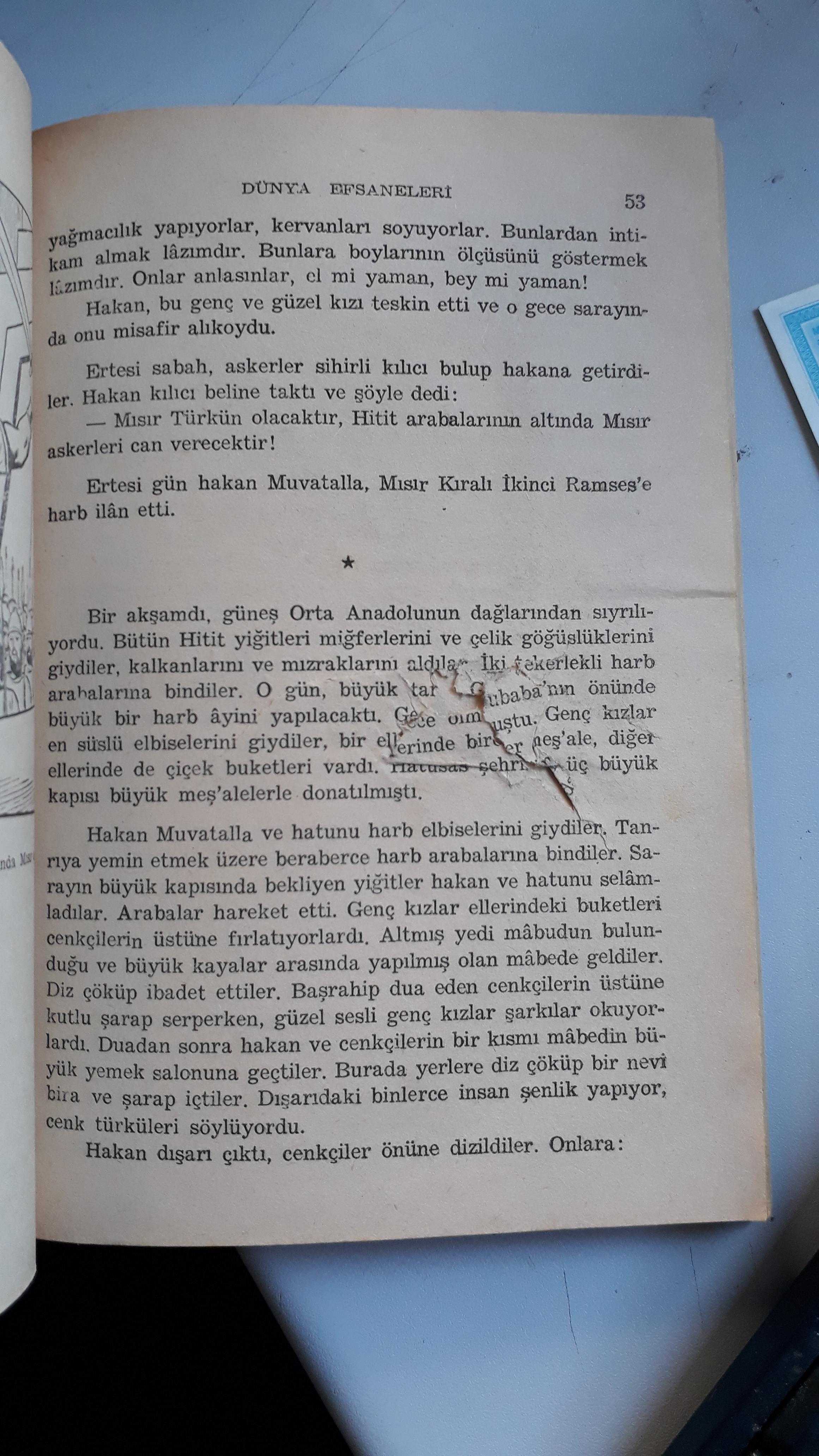 Künyelerinde isim yazılı Kapakları yorgun Dünya efsanaleri kitabının 53. sayfasında resimdeki gibi hasarı var