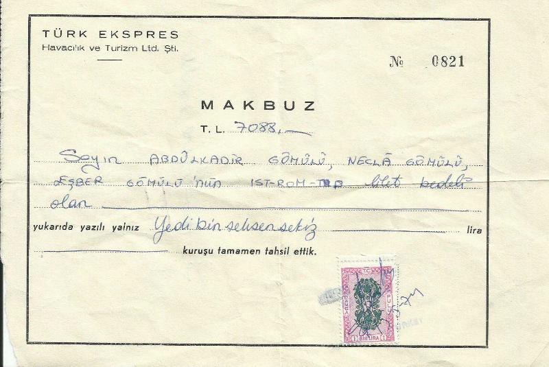 Türk Ekspres Havacılık ve Turizm Limited Şirketi Alındı Makbuzu No 0821 / Damga Pullu, en son 1 yıl önce güncellenmiştir.