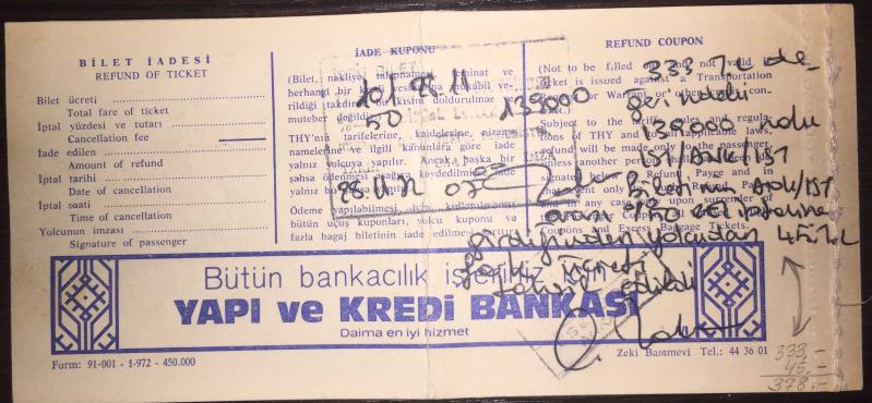 Türk Hava Yolları THY Uçak Bileti İstanbul-Ankara 1982, 3 yıl önce satışa sunulmuştur.
