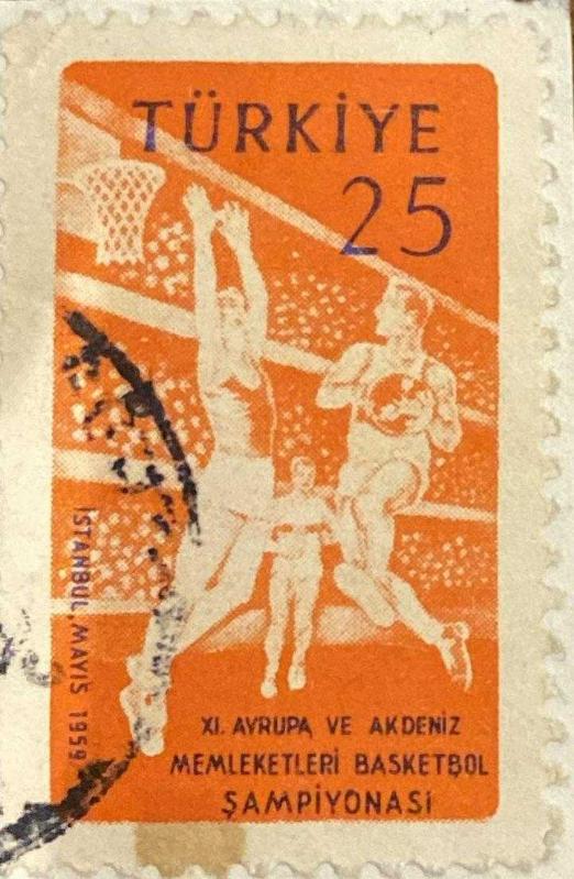 Türk Pulu - Turkish Stamp - Mektup Zarfından Kesilmiş / Postadan Geçmiş Pul Filateli - Damgalı - XI. AVRUPA VE AKDENİZ MEMLEKETLERİ BASKETBOL ŞAMPİYONASI , İSTANBUL MAYIS 1959, 25 PARA - Türkiye Cumhuriyeti - NOSTALJİK DOĞUM GÜNÜ HEDİYESİ, 9 ay önce satışa sunulmuştur.