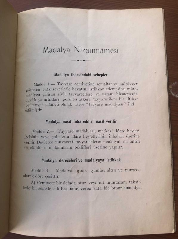 Kitap 1929 yılında yayınlanmıştır. 19 sayfadır. Türk Tayyare Cemiyeti Nizamnamesi Ve Madalya Nizamnamesi 1929 adlı eser Türkçe dilindedir.