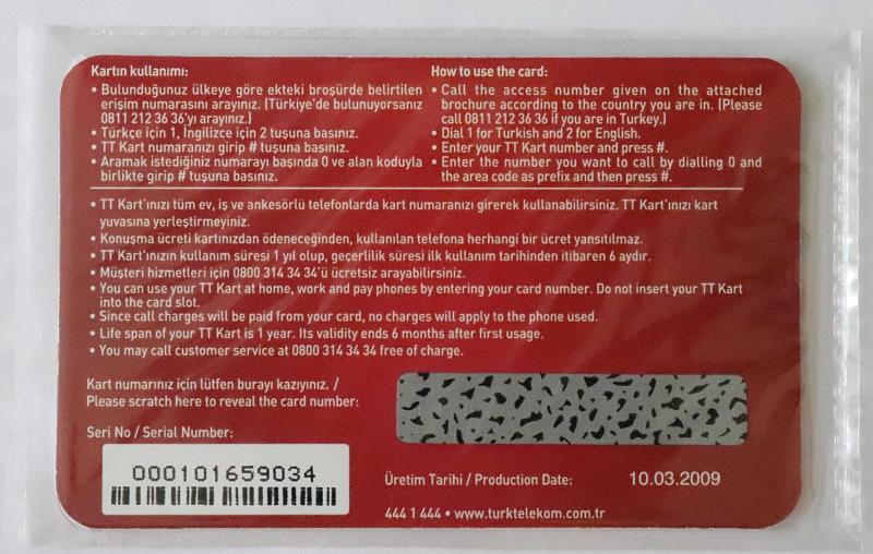 Türk Telekom TT KART Konuşma Kartı 5TL ( AMBALAJINDA) * Sitemizde satışa sunulan ürünler aksi belirtilmedikçe 2. eldir. * Ürünler koleksiyon amaçlıdır, tam olarak kullanım amacınıza uygun olmayabilir. * Ürün açıklamaları dikkatle okunmalı ve fotoğrafları incelenmelidir.(Ürün fotoğrafları ürünün hakiki rengini, tonunu göstermeyebilir.) Ürünleri sipariş etmeden önçe resimleri incelemeyi unutmayın.. Diger Ürünlerimiz için magzamızı ziyaret edebilirsiniz..
