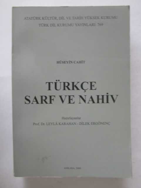 Türkçe Sarf ve Nahiv, Hüseyin Cahit [Yalçın] tarafından kaleme alınmıştır. Eser Leyla Karahan, Dilek Ergönenç editörlüğünde hazırlanmıştır. Kitap 2000 yılında Türk Dil Kurumu tarafından [Ankara] yayınlanmıştır. Sayfa bilgisi XXI+720 s. olarak belirtilmiştir. Türkçe Sarf ve Nahiv adlı eser Türkçe dilindedir.