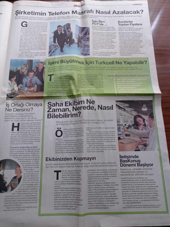 Sayfa Boyutu: 38*56cm Sayfa Sayısı: 4 Turkcell Mobil Hayat Gazetesi Yıpranma, sararmalar, kupon kesiği ve yırtılmalar zamana bağlı olarak görülebilir
