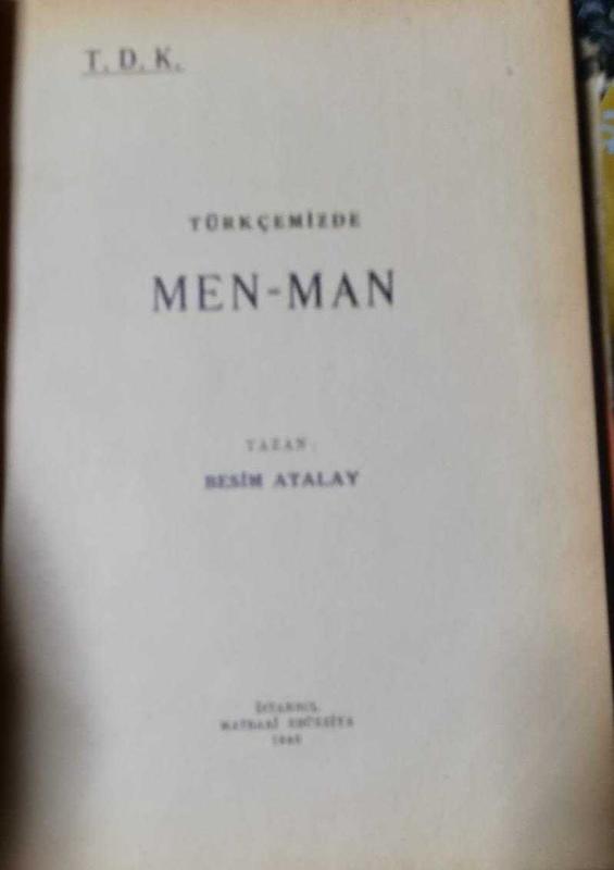 Türkçemizde Men-Man, Besim Atalay tarafından kaleme alınmıştır. Kitap 1940 yılında Türk Dil Kurumu tarafından [İstanbul] yayınlanmıştır. 55 sayfadır. Sayfa bilgisi 55 s. olarak belirtilmiştir. Türkçemizde Men-Man adlı eser Türkçe dilindedir.