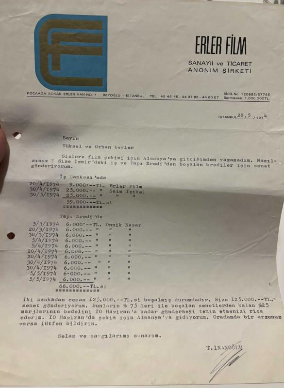 Türker İnanoğlu İmzalı Erler Film Antetli Kâğıt 1974, en son 1 yıl önce güncellenmiştir.