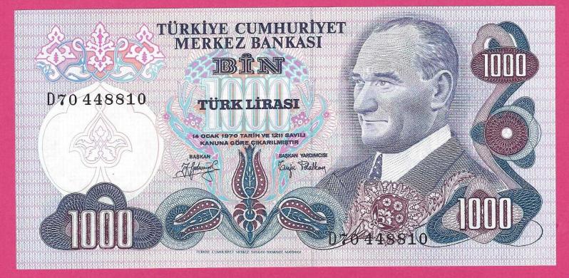 Turkey 1000 Lira PREFIX - D70 - Pick#191 1970 UNC (TK 18 195) ÇİL, 5 gün önce satışa sunulmuştur.
