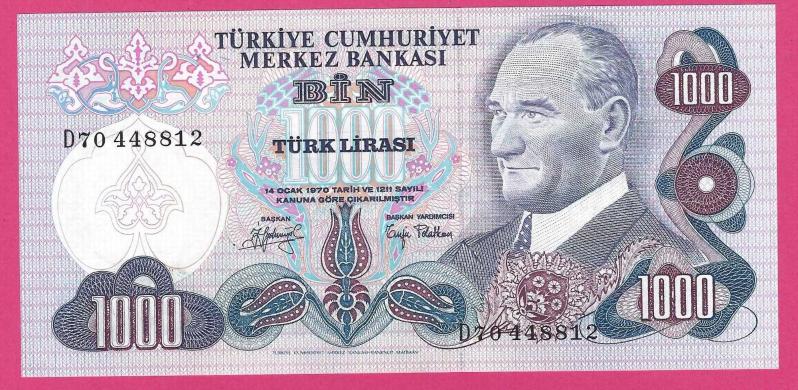 Turkey 1000 Lira PREFIX - D70 - Pick#191 1970 UNC (TK 18 197) ÇİL, 5 gün önce satışa sunulmuştur.