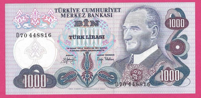 Turkey 1000 Lira PREFIX - D70 - Pick#191 1970 UNC (TK 18 201) ÇİL, 5 gün önce satışa sunulmuştur.