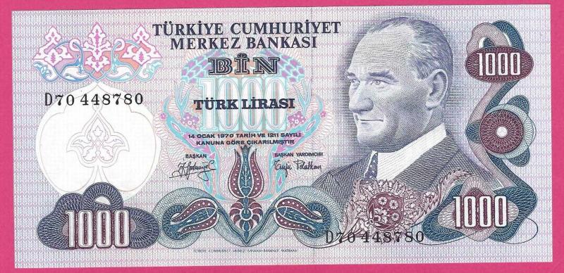 Turkey 1000 Lira PREFIX - D70 - Pick#191 1970 UNC (TK 18 225) ÇİL, 5 gün önce satışa sunulmuştur.