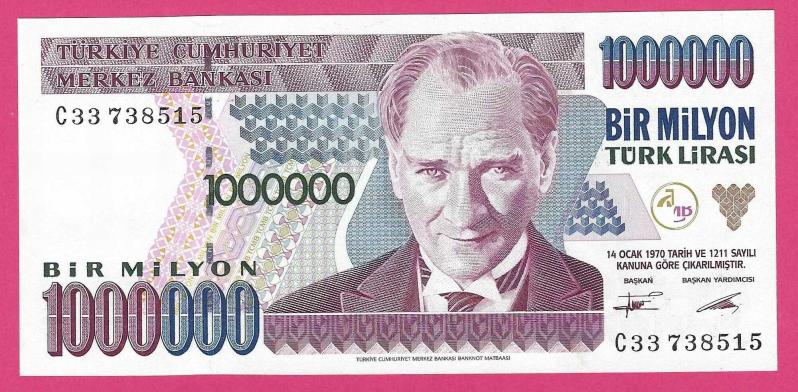 Turkey 1000000 Lira L.1970 (1995) Pick209a PREFIX C33 UNC(TK 18 191) ÇİL, bir ay önce satışa sunulmuştur.