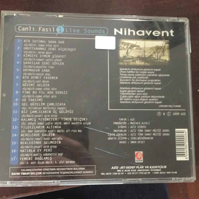 Turkish Old Authentic Sounds - Nihavent Canlı Fasıl-1 / Live Sounds / CD, en son 1 yıl önce güncellenmiştir.