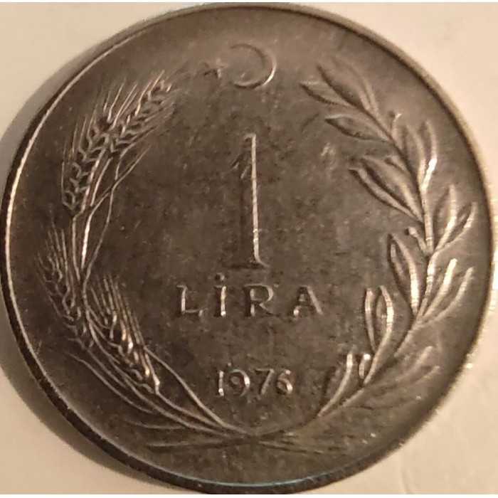 Türkiye 1976 1 Lira - TC Düz - Başaklı Paslanmaz Çelik