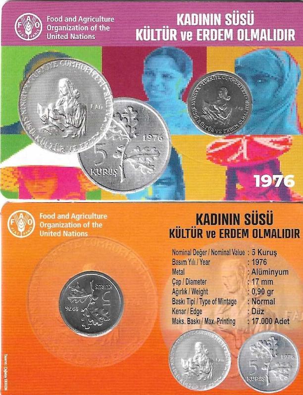 Türkiye 1976 Yılı Kadının Süsü Kültür ve Erdem Olmalıdır 5 Kuruş FAO Koleksiyon Para Çil ( UNC ), en son 4 gün önce güncellenmiştir.