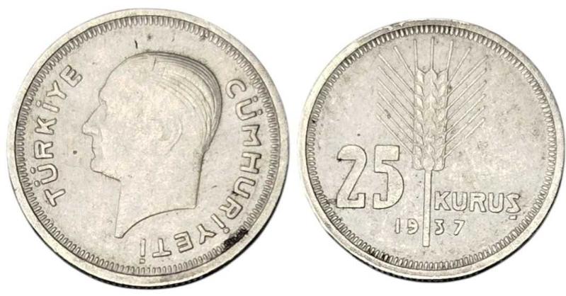 Türkiye 25 Kuruş, 1937 Gümüş 3 gr