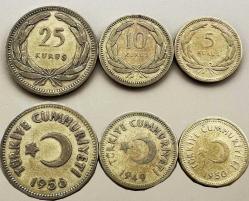 Türkiye 25/10/5 Kuruş 1956/1949/1950 Yılı Orjinal Madeni Para Seti